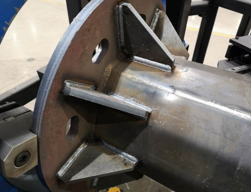Πρώτα από όλα, η εσωτερική και εξωτερική περιμετρική ραφή της πλάκας βάσης στύλου συγκολλείται, και στη συνέχεια η ενίσχυση πλευρά της πλάκας βάσης συγκολλείται αυτόματα